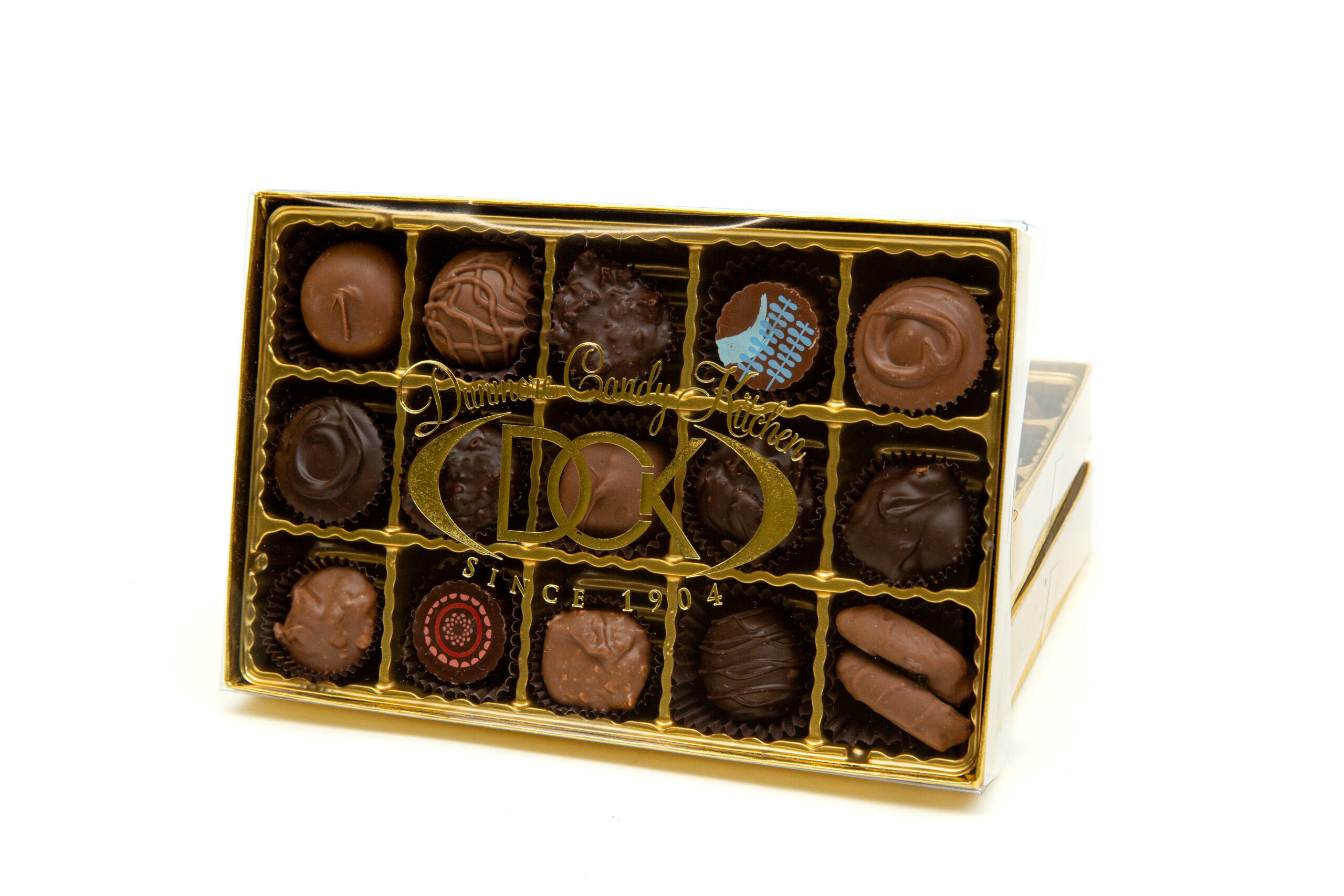 A 1/2lb Assorted Milk & Dark Chocolate Box including Truffles, Nuts, Peanut Butter Cups, Caramels, and more!